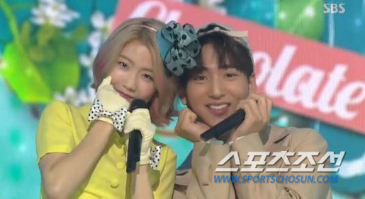 사랑스러운 레몬색 블라우스를 입은 그녀는 특유의 상큼발랄한 매력을 뽐냈다. 버버리코트를 입고 나선 바로가 랩 파트를 소화했다. 서예안은 바로의 버버리 속 얼굴을 묻는 '초콜릿' 안무를 선보였다. 오래전 이미연의 초콜릿 CF를 패러디했다. 선남선녀가 초콜릿처럼 달콤한 매력을 발산했다. 바로는 랩과 함께 능수능란한 안무로 서예안의 무대를 지원사격했다