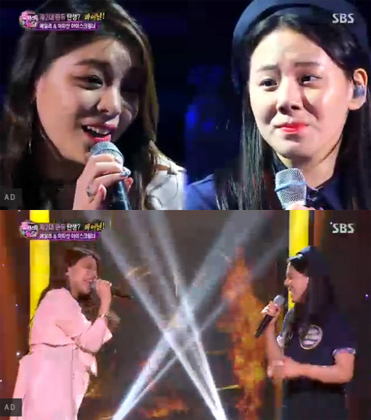 [스포츠조선닷컴 이지현 기자] 에일리X아차산 아이스크림녀 듀오의 폭발적인 무대가 선배들의 긴장감을 높였다.