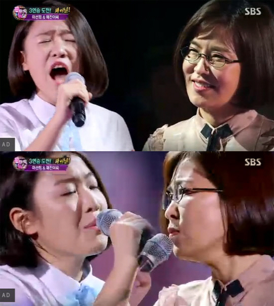 3연승에 도전하는 이선희와 예진아씨는 패티김의 '이별'로 호흡했다. 무대에 앞서 너무 긴장을 하는 예진아씨를 위해 가벼운 스킨십으로 긴장을 풀어 준 이선희의 배려에 예진아씨는 "곡은 이별이지만 이별하지 않도록 열심히하겠다"는 각오를 다졌다.