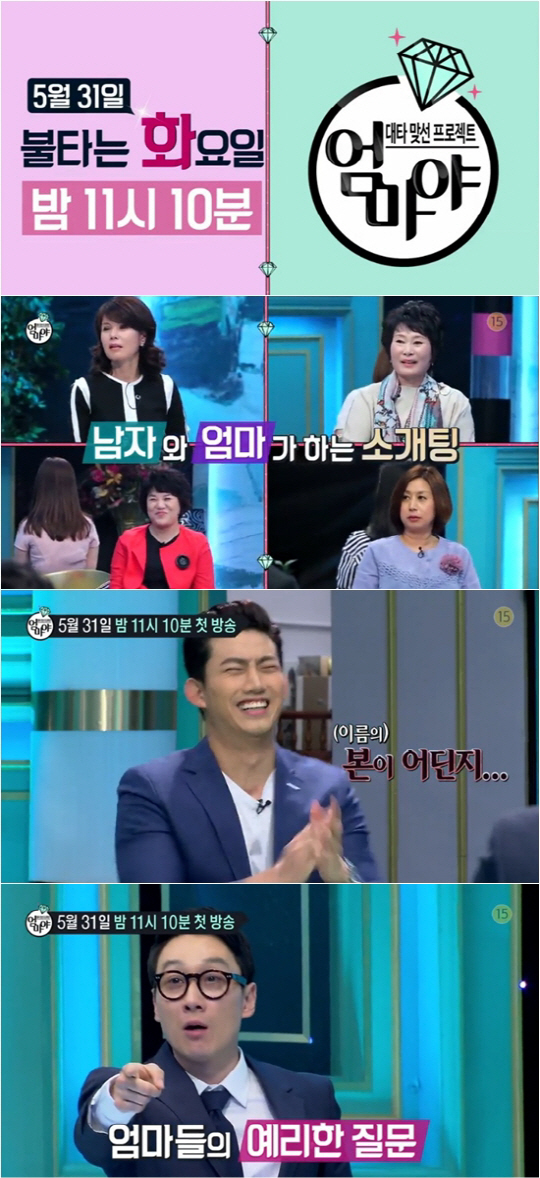 이휘재와 택연의 이색 호흡도 기대되지만, 엄마가 딸의 남자친구를 고르는 '엄마야'의 가장 큰 관전 포인트는 역시 엄마와 딸의 이성관이 얼마나 일치하느냐다. '매의 눈'으로 좋은 남자친구를 고르려는 엄마, 엄마의 모습을 통해 딸을 추측하려 애쓰는 남자 출연자들의 모습이 시청자들에게 웃음과 설렘을 안길 전망. 또한 엄마의 선택이 자신의 마음과 같기를 바라는 딸의 마음이 긴장감을 선사할 것으로 보인다.