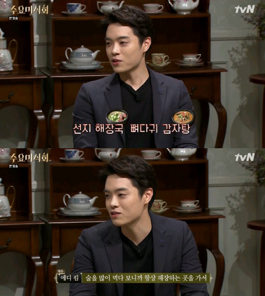 에디킴은 "술을 좋아해 해장할 수 있는 선지 해장국, 뼈다귀 감자탕을 좋아한다"고 밝혔다. 이에 신동엽은 "이름이 에디 킴이라 브런치를 좋아할 줄 알고 섭외했는데 술안주 편에 불러야 할 것 같다"고 너스레를 떨어 웃음을 자아냈다.