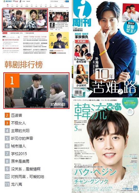 이 뿐만이 아니다. 지난 19일부터 올해 초 국내에서 인기리에 종영한 드라마 '치즈인더트랩'(이하 '치인트')이 유쿠를 통해 독점 방영되기 시작하자 중국 현지에서 특히 다시 돌아온 '유정 선배'에 즉각 반응을 보였다. 방영과 동시에 각종 온라인 검색 순위 최상위권을 점령했고 중국 웨이보 인기 태그차트에는 #519박해진 선배 컴백#이라는 태그가 1, 2위를 다퉜다.