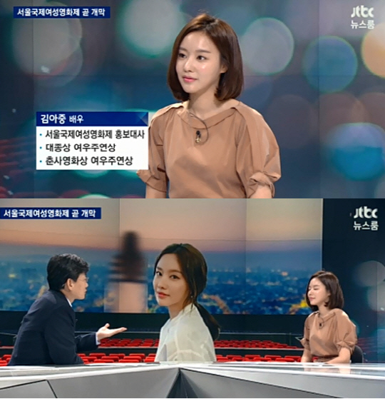 김아중은 오늘(26일) 방송되는 JTBC '뉴스룸'에 출연해 '서울국제여성영화제' 2년째 홍보대사로서 여성영화제의 의미와 다양한 장르의 상영작들을 소개했다.