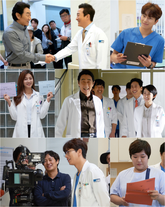 특히 극 중 현성병원의 주춧돌 역할이자 인자한 미소로 현장 분위기를 유연하게 풀어주는 허준호(이건명 역)와 이재룡(채순호 역)은 서로 반갑게 악수를 하고 있어 보는 이들까지 훈훈하게 만들고 있다.