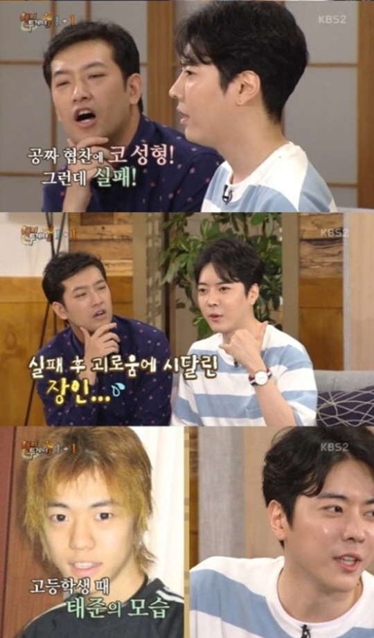 이에 공개된 박태준의 성형 전후 모습에 게스트들은 "일본 축구선수 같다", "지금과 다르지만 그때도 괜찮다"라고 칭찬했다.