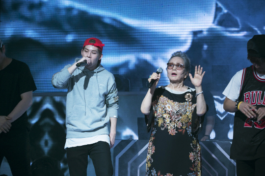 [스포츠조선닷컴 박아람 기자] JTBC 예능 프로그램 '힙합의 민족'에서 귀염둥이 손자 같기만 했던 주헌과 딘딘이 할머니 래퍼를 잡는 호랑이 조교로 변신했다.