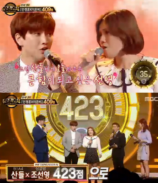 [스포츠조선닷컴 정안지 기자] '듀엣가요제' 산들과 조선영이 4연승을 향해 달렸다.