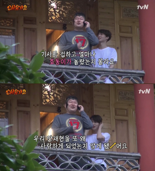 이어 강호동은 안재현에게 "이럴 때 구혜선 사랑해, 이런 것 좀 해라"라고 요구했고, 강호동의 성화에 안재현은 "자기야 사랑해, 구여보 사랑해"라며 아내 구혜선을 향한 애정을 드러냈다.