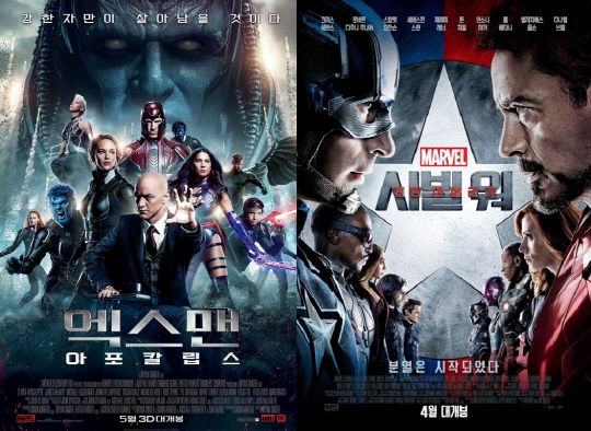 이렇게 '엑스맨: 아포칼립스'는 지난 4월 개봉해 뜨거운 인기를 누렸던 '캡틴 아메리카: 시빌워'에 이어 마블 히어로의 열풍을 고스란히 잇게 됐다. 4월 27일 개봉한 '캡틴 아메리카: 시빌워'는 개봉 첫 날 72만 7833명의 관객을 동원했으며, 역대 마블 영화 중 가장 높은 흥행 성적을 기록한 '어벤져스: 에이지 오브 울트론'의 오프닝 스코어 보다 높은 수치로 눈길을 끌었다.