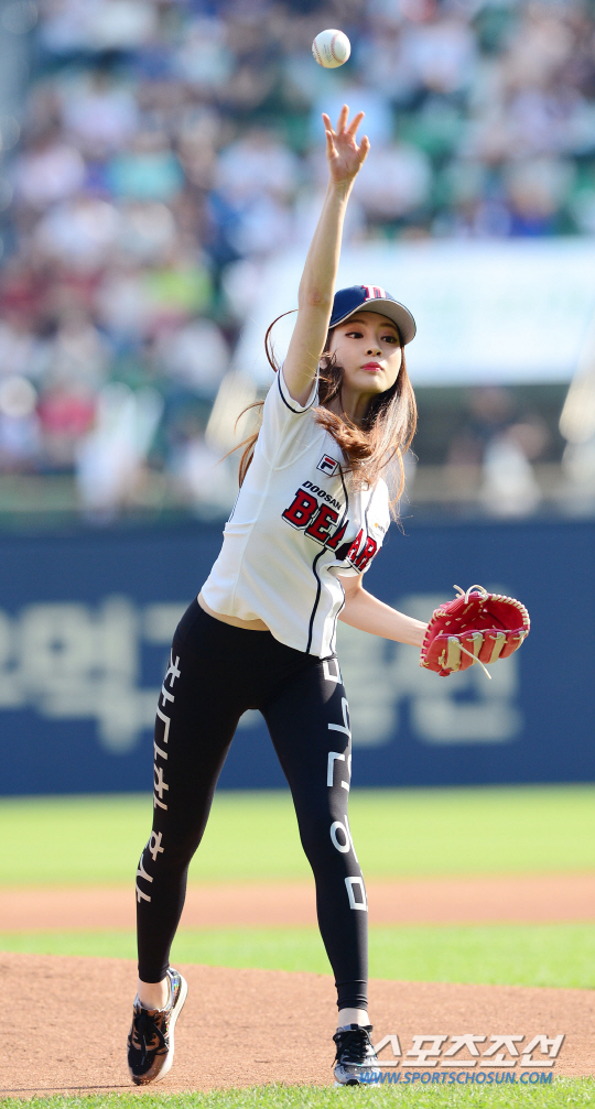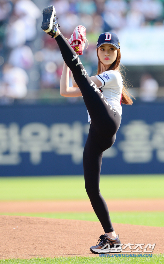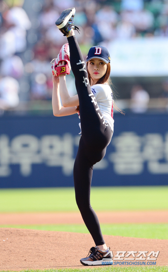 양정원은 요염한 포즈로 포수를 바라본 후 필라테스 자세를 취한 후 곧바로 다리를 180도 돌리며 하이킥 시구를 했다. 중심이 전혀 흐트러지지 않는 완벽한 시구였다. 잠실=