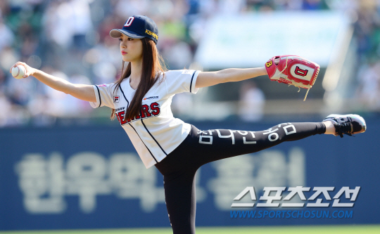 '마리텔 여신' 양정원이 잠실구장에서 하이킥 시구의 진수를 보여줬다. 28일 오후 LG와 두산의 잠실 경기를 앞두고 배우 양정원이 그라운드에 나와 시구를 했다. 필라테스로 다져진 완벽한 몸매의 소유자 답게 양정원은 검은색 레깅스 의상으로 야구팬들의 시선을 사로잡았다.