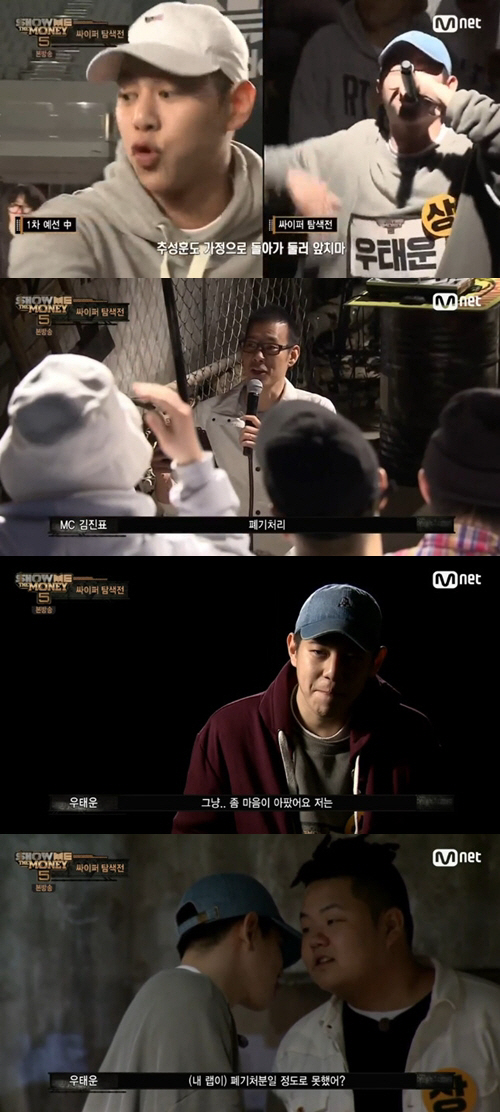 우태운은 자신에 대한 평가에 충격을 많이 받은 듯 옆에 있는 동료에게 "내 랩이 폐기처분일 정도로 못했냐. 너무 궁금해서 그렇다. 그 정도로 못 했는지"라고 말해 안타까움을 안겼다.