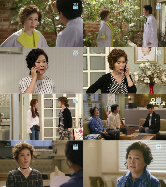 때마침 임예진이 홍요섭에게 건 전화를 김해숙이 받았던 터. 이어 김해숙이 정해인의 전화번호를 달라는 임예진의 부탁을 단칼에 거절하면서, 두 사람의 신경전이 시작됐다. 더욱이 임예진이 "그 집 아들이 우리 애 꼬드겨 사업자금 빼내려고 접근한 거란 말이에요"라고 주장하자, 김해숙은 "지선 엄마는 세상 그렇게 사세요?"라고 되받아쳐 긴장감을 높였다. 하지만 임예진이 굴하지 않고 근거가 있다고 목소리를 높이자, 급기야 김해숙이 전화기를 홍요섭에게 돌려주며 "나 이 여자 쫓아가 두들겨 패겠어. 애들 들어오면 얘기하자 그래"라고 질색, 갈등이 일단락됐다.