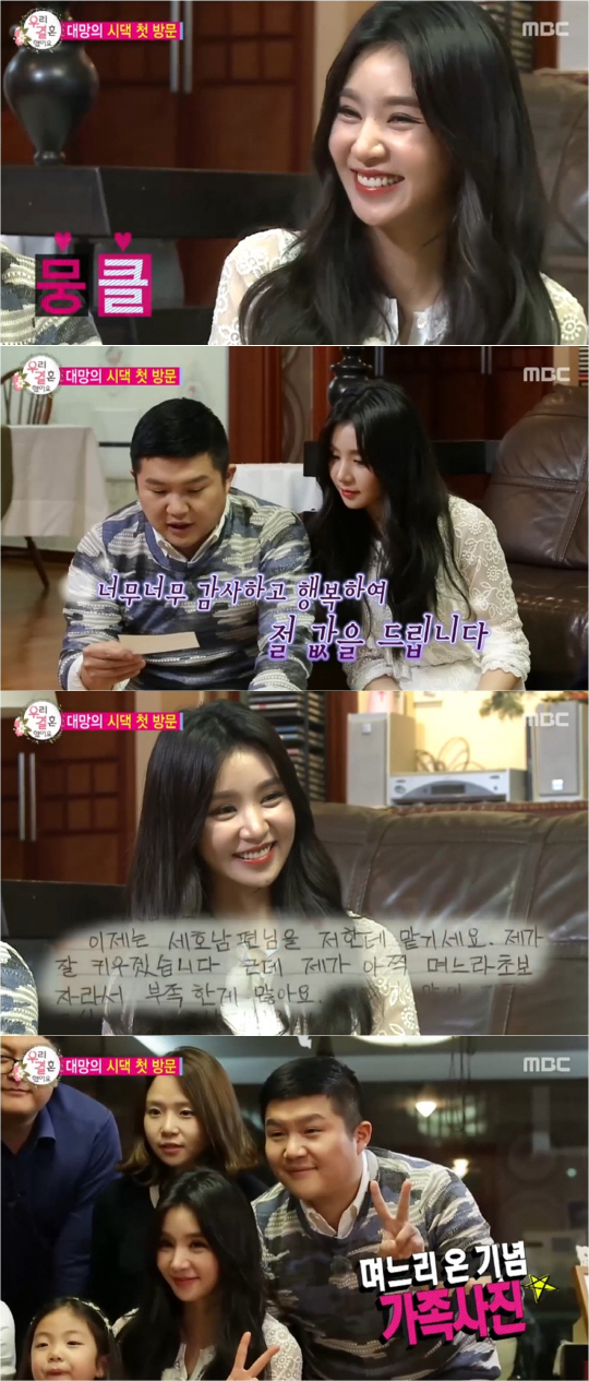 이 밖에도 차오루는 시댁 첫 방문에 요리 솜씨까지 보여주며 시댁 식구들의 마음을 제대로 사로잡았다. 부엌에 들어선 차오루는 능숙하게 고기를 손질하는 것은 물론, 요리를 척척 해내며 시어머니 눈에 쏙 든 것. 이 때 조세호는 부엌을 왔다갔다하며 차오루 앞을 떠나지 못하는 등 '아내 바보'의 모습으로 웃음을 유발하기도 했다.