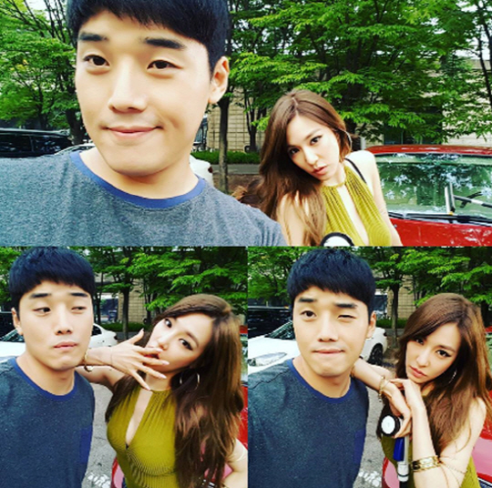공개된 사진 속 티파니는 'SNL코리아7'의 '3분 여친'에서 호흡을 맞춘 권혁수와 인증샷 촬 영 중인 모습.