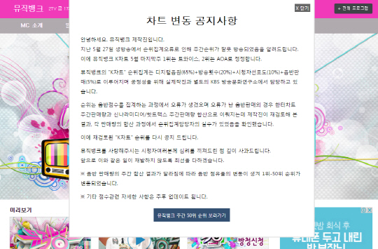 [스포츠조선 고재완 기자] KBS2 '뮤직뱅크'(이하 뮤뱅) 측이 순위 집계 오류를 인정했다.