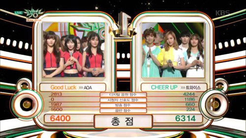 30일 KBS 2TV '뮤직뱅크' 제작진은 공식 보도자료를 통해 "지난 27일 생방송에서 순위집계오류로 인해 주간순위가 잘못 방송됐다"며 "'뮤직뱅크' K차트 5월 마지막 주 1위는 트와이스, 2위는 AOA로 정정한다"고 전했다.