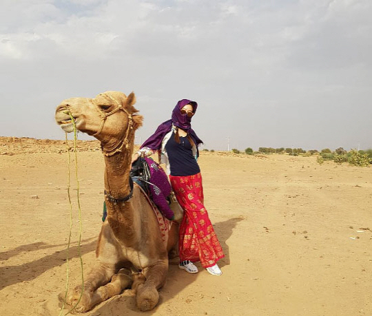 30일 최여진은 자신의 인스타그램에 "레이싱모델이 있다면 인도엔 낙타모델이 있어요"라는 글과 함께 사진을 게재했다.