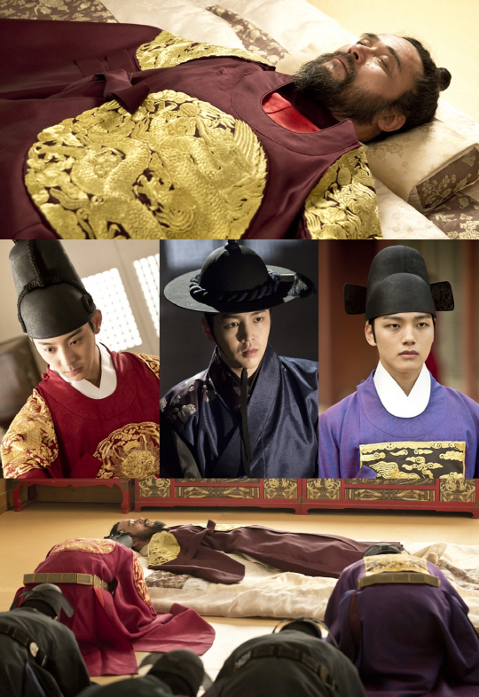 31일 '대박' 제작진은 세상을 떠난 숙종과, 그런 숙종의 주검 앞에 머리를 조아린 세자와 연잉군의 모습을 공개했다. 한결 편안해진 숙종의 표정과 달리, 세자 윤-대길-연잉군 남겨진 이들의 모습에서는 슬픔과 긴장감 등이 전해진다. 과연 숙종의 죽음은 이들에게 어떤 파란을 또 몰고 올 것인가? 이인좌는 숙종의 아들들에게, 자신의 욕망을 어떻게 드러내고 폭주할 것인가?