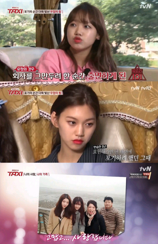 특히 최유정은 "회사(플레디스)를 그만두려 할 때 '프로듀스101'에 참여하게 됐다. 당시 학교를 안다녔었는데 혼자 있는 시간이 많아지다보니 우울했다. 평가에서도 D등급을 받았었다. 슬럼프에 빠졌다"고 고백했다. 이에 동료 김도연은 "최유정이 회사에서 제일 오래있었다. 회사 안에서는 친화력이 가장 좋았는데 혼자 다니니 쟤 왜저러나 싶었다"고 눈물을 보이며 진한 동료애를 드러내 훈훈함을 자아냈다.