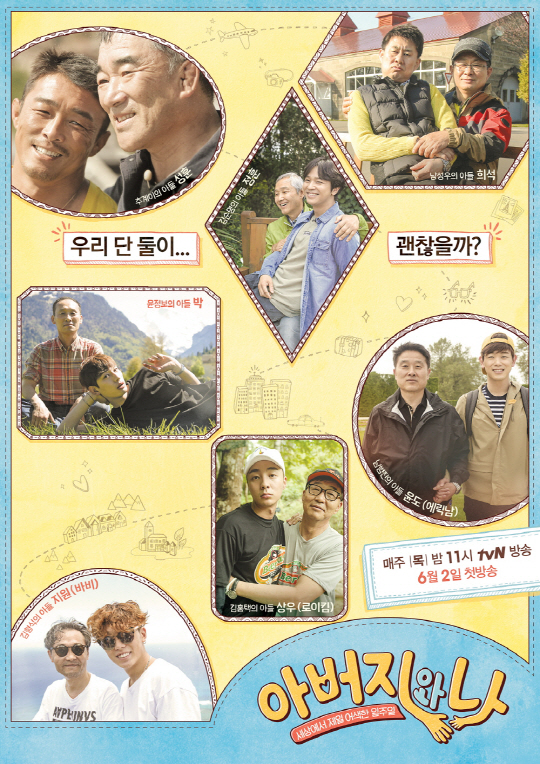 [스포츠조선닷컴 김준석 기자] tvN의 신규 예능으로 큰 기대를 얻고 있는 '아버지와 나'가 오늘 밤 11시 첫 방송한다.