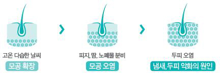 비우고 빼내는 것이 건강한 몸과 피부를 만들기 위한 기본적인 단계이며, 이는 두피 관리에도 일맥상통한다. 이런 맥락에서 최근 미(美)에 관심이 많은 소비자들은 스케일링의 영역을 피부뿐만이 아니라 제2의 피부라고 불리는 두피까지 범위를 확대했고 각종 홈케어 제품으로 두피를 관리하고 있다. 눈에 보이는 더러움이 확연히 보이는 피부와는 달리 땀과 피지로 인한 두피의 노폐물은 눈으로 확인하기 힘들기 때문에 관련 제품에 대한 니즈가 급상승한 것으로 보여진다. 특히 여름 두피는 아무리 샴푸로 꼼꼼하고 세심하게 씻는다고 하여도 더운 날씨로 인해 왕성해진 피지와 두피 표면과 모공에 쌓인 노폐물과 각질은 손쉽게 씻기지 않는다. 노폐물을 장기간 방치하면 두피 모공을 막고 호흡을 방해해 모발이 가늘어지고 탈모의 원인이 되기 쉽다. 따라서 여름철 두피 관리의 꼭 필요한 것은 두피 스케일링이다.