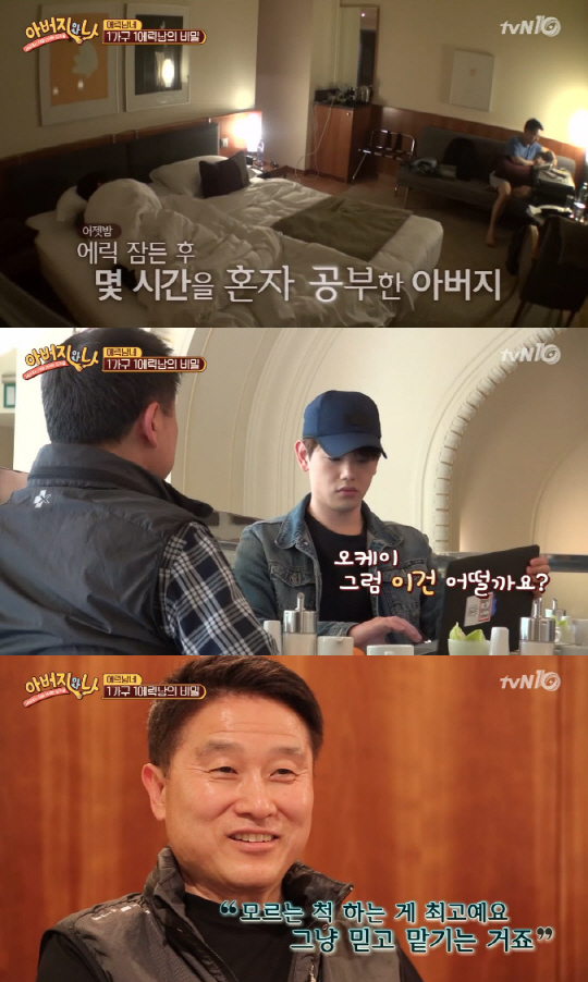 아버지는 "아들이 여행 계획을 짠 것을 봤다. 내가 어제 했던 거를 제법 다 해놨더라. 그 다음부터 신경을 안 썼다. 모르는 척 하는 게 최고다. 그냥 믿고 맡기는 거다"라고 웃으며 말했다. <스포츠조선닷컴>