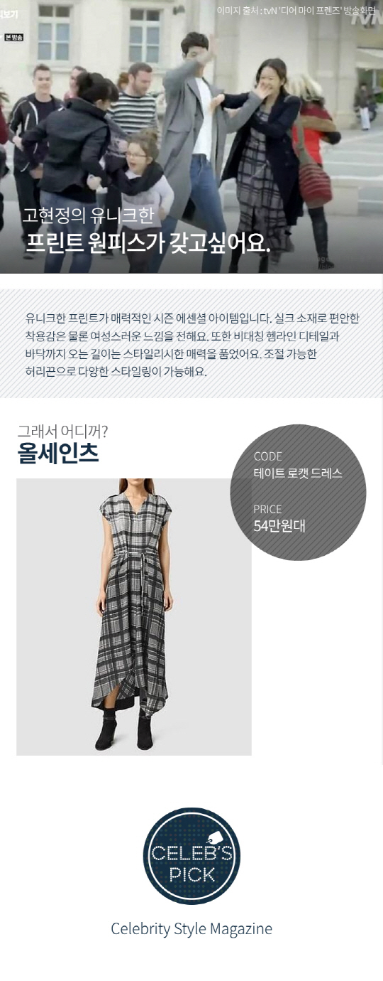 #어디꺼 #스포츠조선 #고현정 #디어마이프렌즈 #원피스 #사랑한다면춤을춰라 #체크원피스와함께 #언니의우아한맥시원피스 #올세인츠