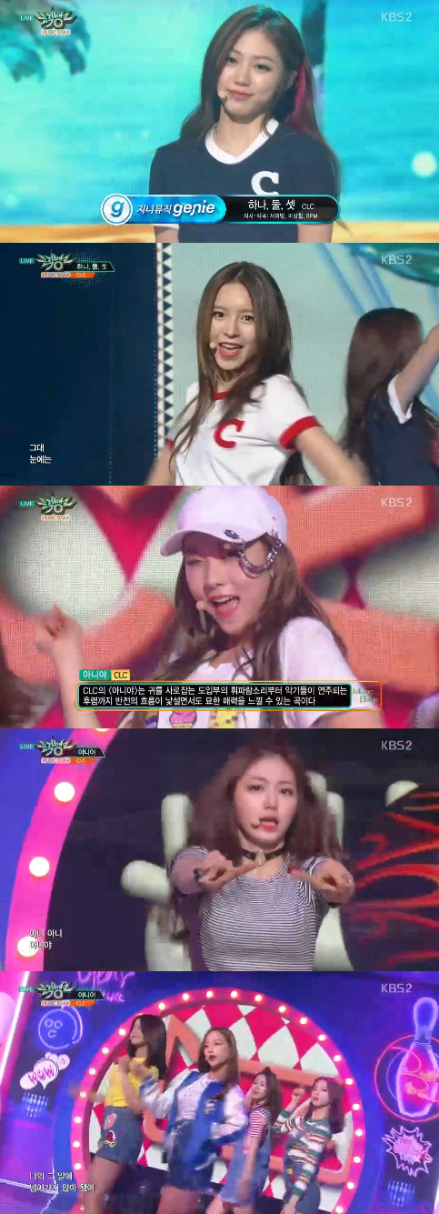 CLC는 3일 오후 방송된 KBS 2TV '뮤직뱅크'에서 신곡 '하나, 둘, 셋'과 타이틀곡 '아니야' 무대를 를 선보였다.