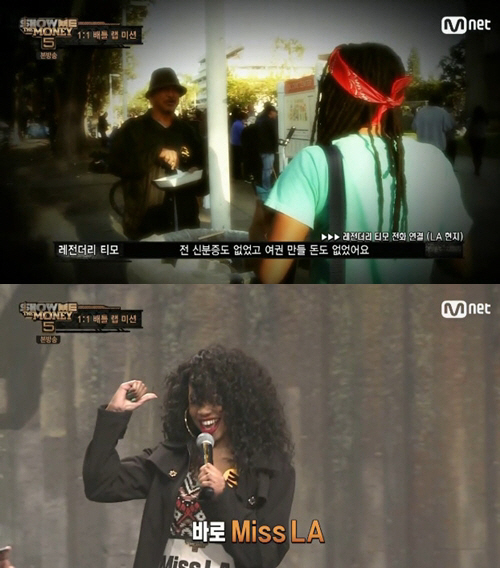 미스LA가 3일 밤 방송된 Mnet '쇼미더머니5'의 3차 예선장에 모습을 드러냈다.