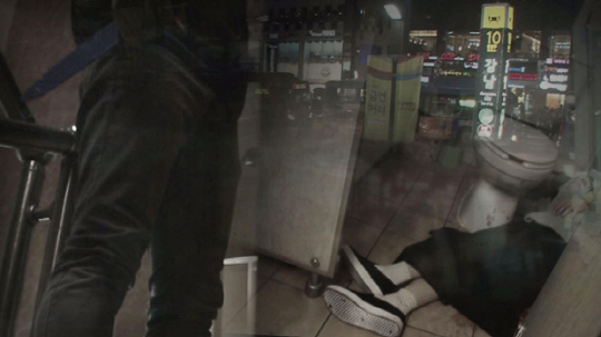 "소변을 보고 나오는데 화장실 칸 밖으로 신발이 나와 있었어요.