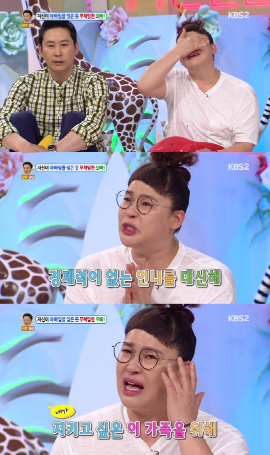 이어 "저희 형부가 일찍 돌아가셨어요. 언니는 경제적인 능력이 없었다. 저도 (조카를) 호적에 올리고 싶었다. 내가 하고 싶은 것을 덜 해야만 조카들에게 해줄 수 있는 것을 더 할 수 있었다. 그래서 대학교까지 보내야한다고 생각했다"라고 눈물을 쏟아냈다.