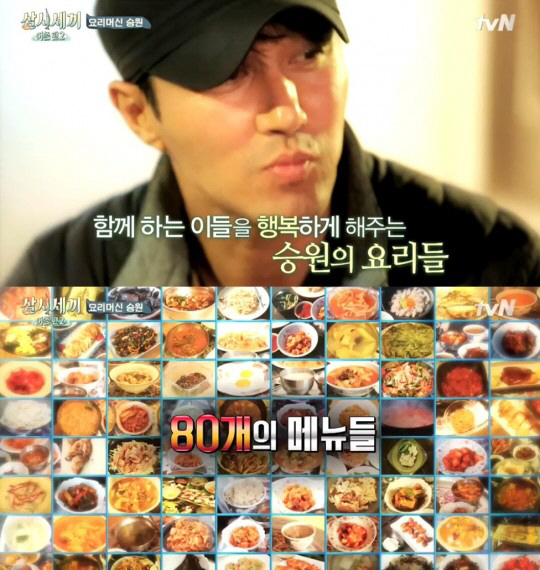 차승원은 배춧국에 메추리알 장조림, 배추 겉절이 등 소박한 음식들부터 고추잡채, 우럭탕수, 홍합짬뽕, 장어구이 등의 일품 요리까지 완벽하게 해내 놀라움을 자아냈다. 깍두기, 동치미, 막걸리에 이르는 발효음식은 물론, 생산살로 어묵까지 만들어내 시청자를 감탄케 했다. 결국은 화덕을 활용해 해산물 피자까지 만들어 '삼시세끼'에서 화려한 '쿡방'을 꽃피웠다.