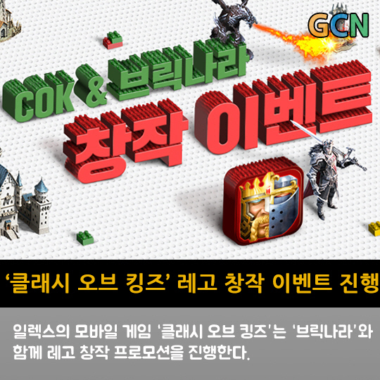 일렉스의 모바일 게임 '클래시 오브 킹즈'는 '브릭나라'와 함께 레고 창작 프로모션을 진행한다.