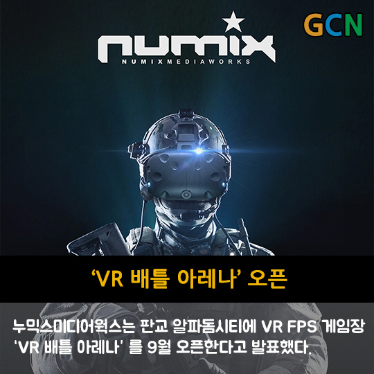 누믹스미디어웍스는 판교 알파돔시티에 VR FPS 게임장 'VR 배틀아레나' 를 9월 오픈한다고 발표했다.