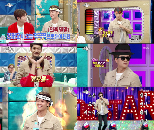 지난 8일 방송된 MBC '라디오스타'에 서프라이즈의 서강준, 노을의 강균성, 전우성과 함께 출연한 강태오는 신인다운 패기 넘치는 모습과 숨겨온 예능감을 폭발시켰다. 강태오는 긴장한 모습을 보이기도 했지만 진지한 외모와 다른 반전 개인기를 선보이며 시청자들의 눈길을 사로잡았다.