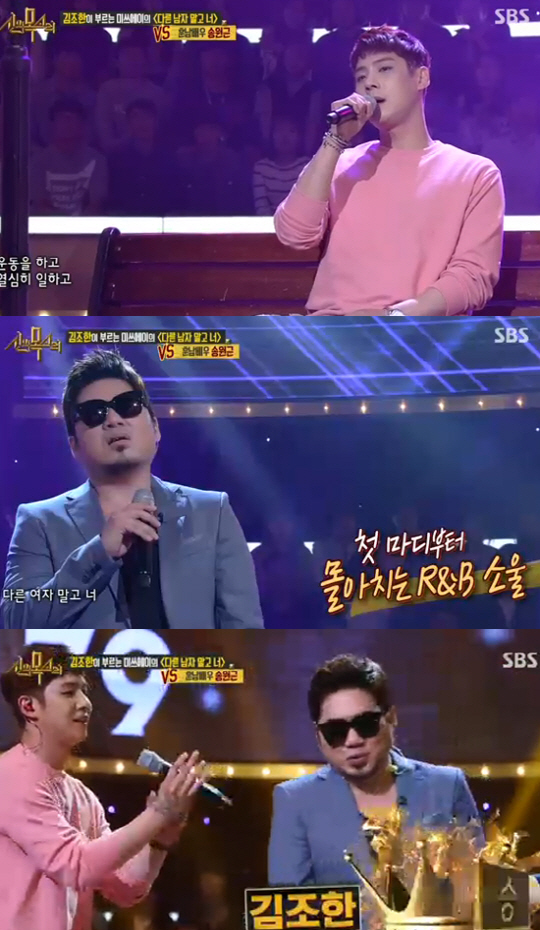 [스포츠조선닷컴 정안지 기자] '신의 목소리' 김조한이 송원근을 꺾고 승리했다.