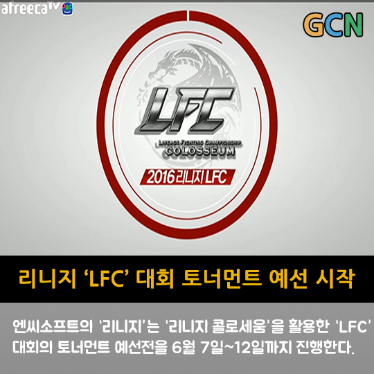 엔씨소프트의 '리니지'는 '리니지 콜로세움'을 활용한 'LFC' 대회의 토너먼트 예선전을 6월 7일부터 12일까지 진행한다.
