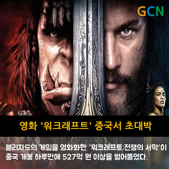 블리자드의 게임을 영화화한 '워크래프트:전쟁의 서막'이 중국 개봉 하루만에 527억 원 이상을 벌어들였다.