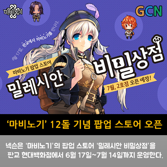 넥슨은 '마비노기'의 팝업스토어 '밀레시안 비밀상점'을 판교 현대백화점에서 6월 17일~7월 14일까지 운영한다.