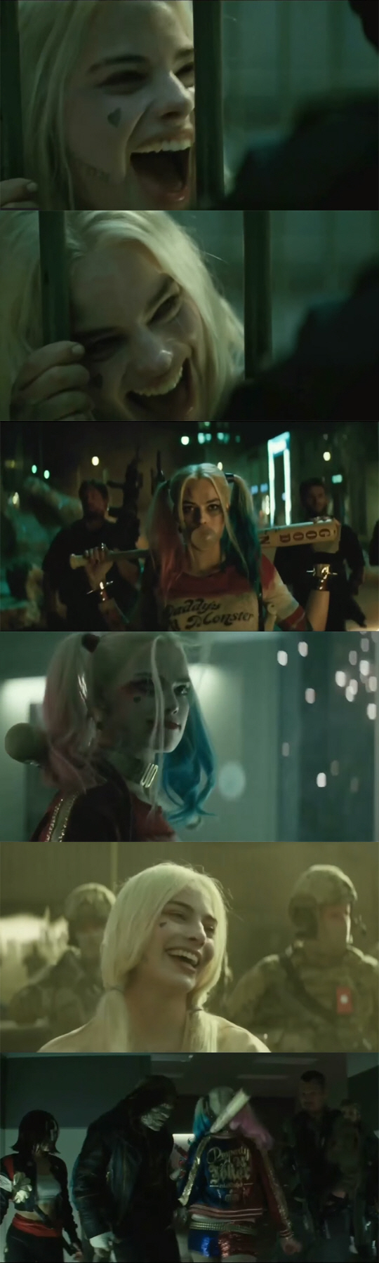 그랬던 할리퀸이 달라졌다. 10일(한국 시각) 공개된 새 예고편에서 할리퀸(마고 로비)은 마침내 가면을 벗어던지고 '광기의 공주'로 거듭났다. 미국 연예매체 디지털스파이는 "마고 로비가 마침내 조커의 웃음을 터뜨렸다"라고 표현했다. 창살을 그러쥔 채 절규하듯 웃는 모습은 왜 할리퀸이 조커의 여자친구인지를 보여준다.
