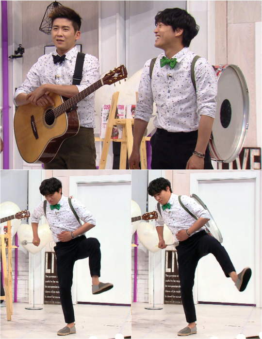 이후 차태현은 마치 어릿광대처럼 한쪽다리를 들고 등에 있는 북을 치며 흥을 돋우기도 하고, 홍경민은 감미로운 기타연주를 해 시청자들의 귀를 더욱 즐겁게 만들어 줄 예정이라고 전해져 기대감이 모아지고 있다.