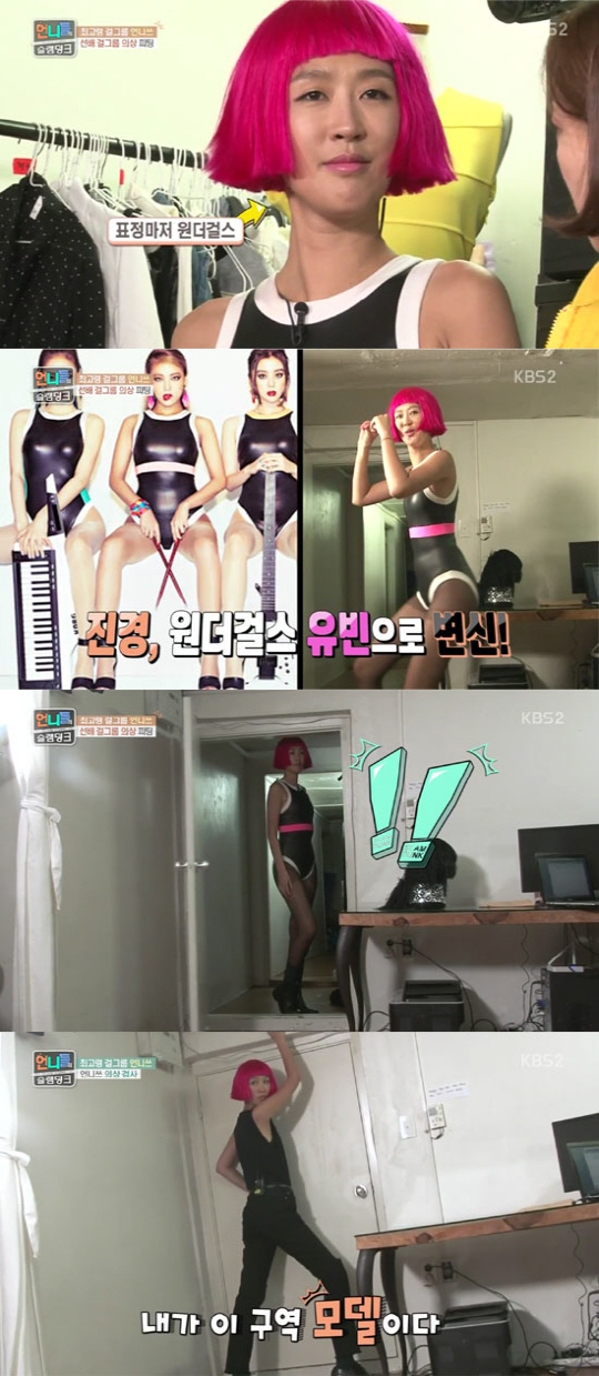 박진영의 주문대로 심플한 블랙 의상에 강남 일대를 뒤져 찾아낸 핑크 가발로 포인트를 준 홍진경은 정보윤이 소장하고 있는 원더걸스의 '아이 필 유(I feel you)' 뮤직비디오 의상으로 또 한 번 변신을 꾀했다.