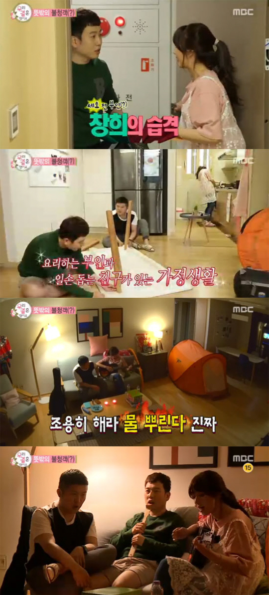 식사를 마친 조세호는 남창희에게 "자고 간다며, 어디로 가?"라며 은근슬쩍 떴다. 그러자 남창희는 거실로 나가 원터치 텐트를 펼치며 "자고 가려고"라고 이야기해 부부를 놀라게 했다.