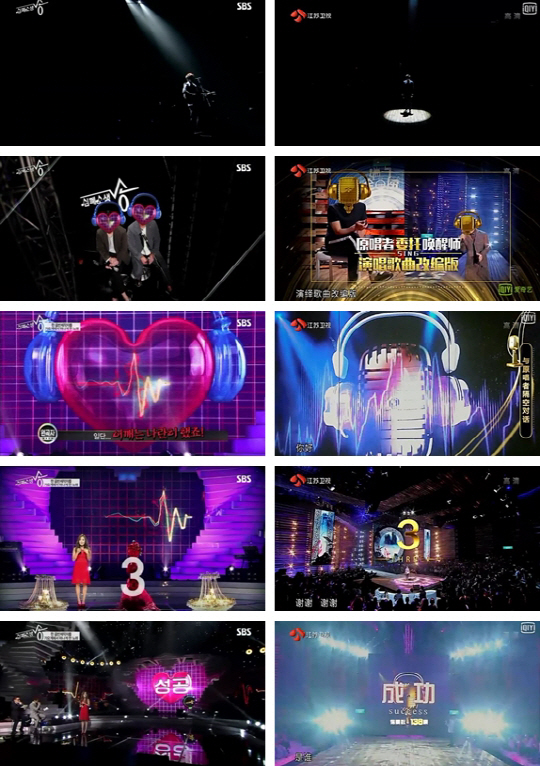 사회자가 처음 등장해 노래를 부르고, 프로그램 규칙과 취지를 설명하는 오프닝 등 연출 기법마저 똑같았다. 굳이 다른 점을 찾자면 무대 세트 일부 디자인만 달랐다. 차별 요소로 언급하기조차 어렵다.