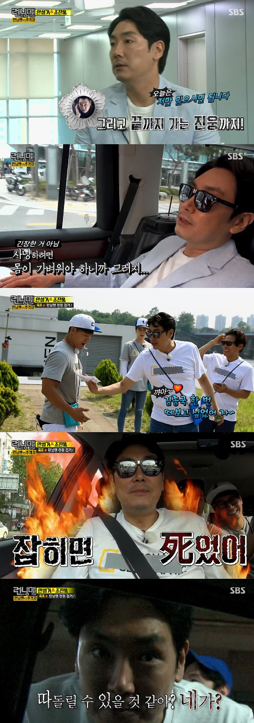또한, 선글라스를 쓰고 멤버들을 무섭게 추격하는 조진웅의 모습은 마치 그가 출연했던 영화 '끝까지 간다'의 한 장면을 보는 듯 했다. 특히 이광수를 잡을 뻔 하다 놓친 후 "그림이 아름다울 수 있었는데 아깝네"라고 말하는 모습과 차 안에 있는 이광수를 앞박하기 위해 무서운 표정으로 차 창을 두드리며 "아름다운 그림이 될 수 있어. 형하고 함께 가자"라고 말하는 모습은 보는 이도 움찔하게 만들 정도였다.