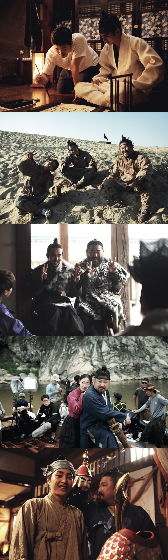 또한 사냥꾼으로 변장해 봉황 사기극을 벌이는 김선달과 보원의 장면을 촬영하기에 앞서 리허설을 하는 유승호, 고창석의 모습은 영화 속 두 사람의 찰떡궁합 호흡을 엿볼 수 있다. 여기에 유승호와 고창석, 시우민은 고된 촬영 중에도 카메라를 향해 밝은 표정을 지어 보이는가 하면, 대동강에서 추격 장면을 촬영 중인 고창석과 라미란의 모습은 코믹 연기의 대가들이 펼칠 유쾌한 호흡에 대한 기대감을 더한다.