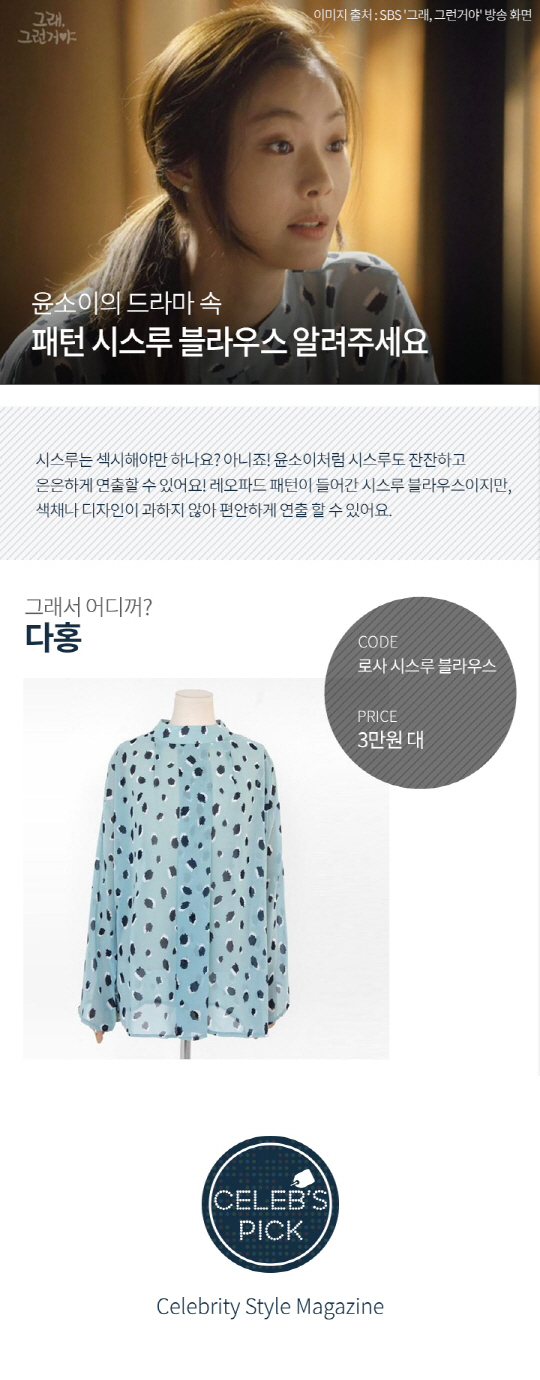[어디꺼] '그래그런거야' 윤소이의 청순 레오파드 블라우스?