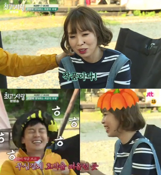 장난기가 발동한 허경환은 오나미 얼굴에 '수박씨'를 붙였다. 허경환은 "작품이다. '호박씨' 올리기 힘들다"고 말했다.