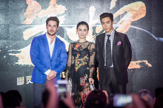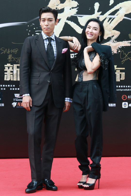 지난 14일 오후 탑은 중국 상하이에서 개최된 영화 '아웃 오브 컨트롤' 기자회견에 여주인공인 장바이즈(장백지), 감독 마이클 트레비노와 함께 참석했다.